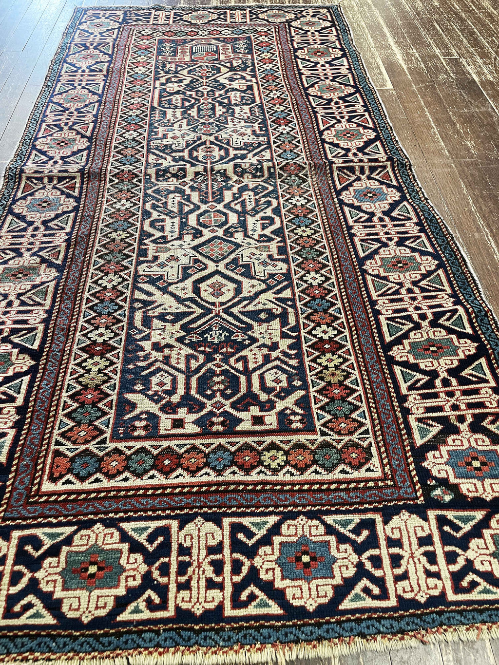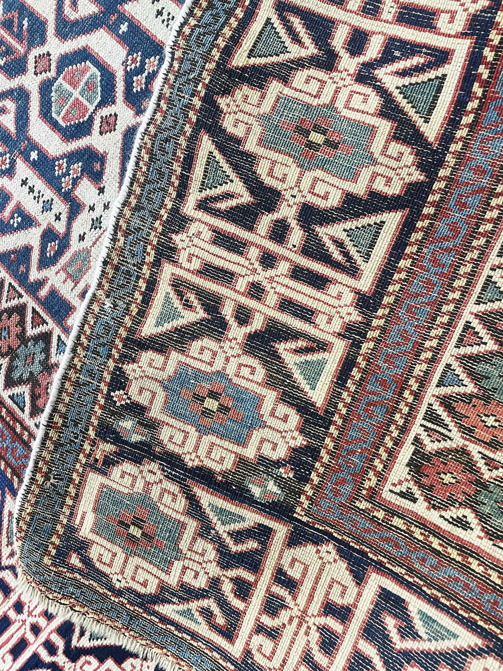 A more refined and decorative aesthetic compared to bolder Kazak weavings