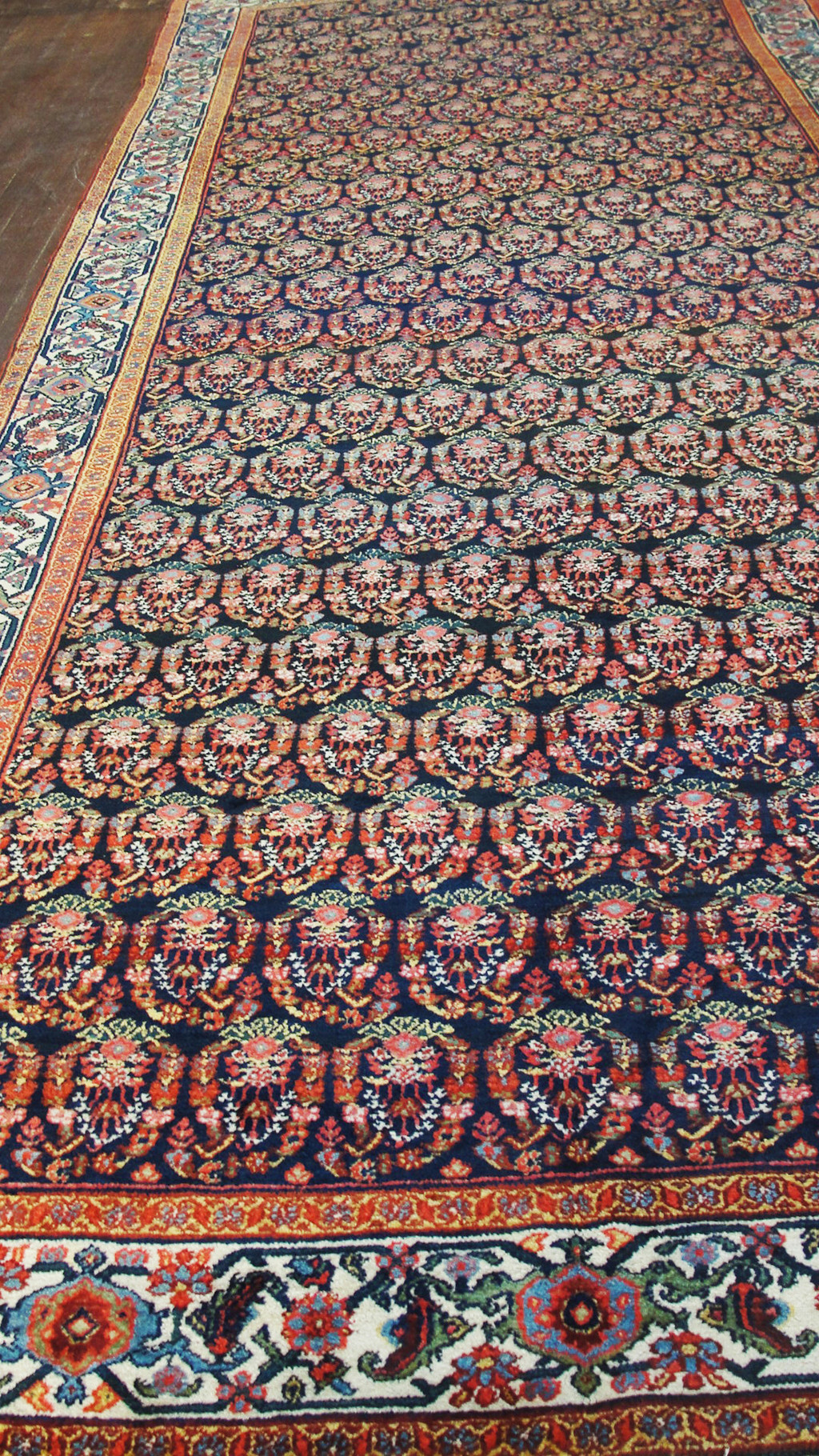 Remarkable fine antique Persian Senneh Malayer galley size carpet, circa 1900 in excellent condition.