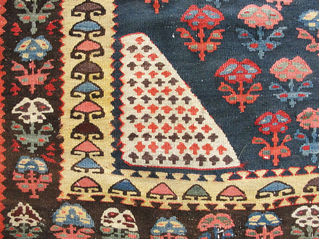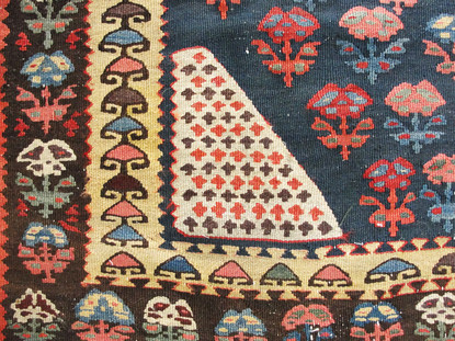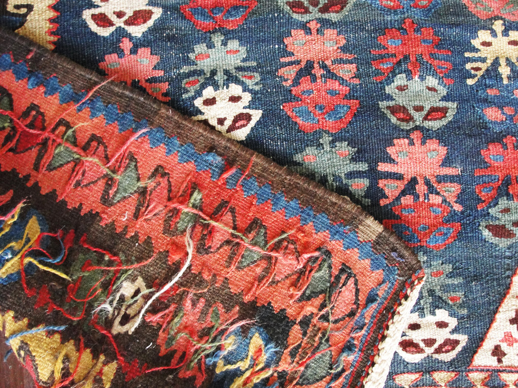 Soumak is a tapestry technique of weaving strong and decorative textiles used as rugs and domestic bags. Baks used for bedding are known as Soumak Mafrash. Soumak is a type of flat-weave, somewhat resembling but stronger and thicker than Kilim, with a smooth front face and a ragged back; where Kilim is smooth both sides. Soumak lacks the slits characteristic of Kilim, as it is usually woven with supplementary weft threads as continuous supports.