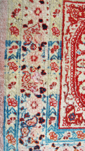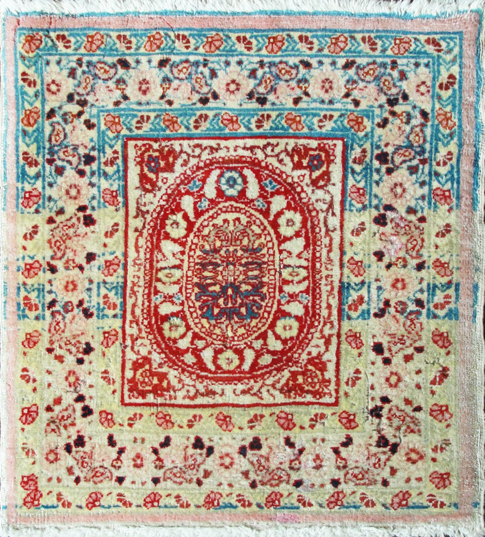 Indulge in the splendor of the 21" x 24" Antique Persian Tabriz rug, a veritable crown jewel in the world of Persian rugs, hailing from the distinguished era of the 1880s. This masterpiece boasts a very fine weave and is adorned with the luxurious touch of kork wool, presenting itself in excellent condition, a testament to its enduring beauty. Its open field with the large central medallion, floral design unfolds gracefully against a canvas ranging from tan chickpea to light green, creating an enchanting visual symphony. This carpet is not merely a floor covering; it is a work of art that elevates your space to new heights of sophistication. Tabriz carpets, known for their exceptional weave, pay homage to classical Persian rug traditions. Tabriz, once the capital of the Safavid dynasty, holds a special place in the history of rug making. The renowned master weaver, Haji Jalili, played a pivotal role in shaping Tabriz rug craftsmanship. His unique approach to rug-making, marked by distinctive color palettes and design elements, has left an indelible mark on the world of rugs. This particular rug, bearing the signature style of Haji Jalili, showcases a blend of lighter colors such as pinks, golds, and grays, making it highly coveted by decorators and collectors alike. Marvel at the epitome of finesse and artistry embodied in the Antique Persian Tabriz Hajji Jalil Rug. A true treasure for those with an appreciation for beauty, this masterpiece beckons you with its ivory and black floral central medallion. The open field, embracing a Rusty Copper hue, complements the medallion's allure, creating a captivating visual harmony. The main border, adorned with ivory and black floral medallions, stands as a testament to the rug's opulence. istory, a testament to the artistry and craftsmanship of a bygone era. As you invite this masterpiece into your home, you embrace not just a rug but a glimpse into a time when weaving was a form of storytelling and cultural expression. This rug is an exquisite bridge between history and modern aesthetics, offering a timeless elegance that resonates through the ages.