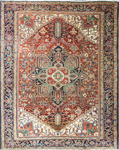 Beautiful and colorful Persian Heriz rug, with vegetable dyes wool and very good quality. Heriz rugs are Persian rugs from the area of Heris, East Azerbaijan in northwest Iran, northeast of Tabriz. Such rugs are produced in the village of the same name in the slopes of Mount Sabalan. Heriz carpets are durable and hard-wearing and they can last for generations. 19th century examples of such carpets are often found on sale by major auction houses in United States and Europe. Measures: 8'6" x 10'9".