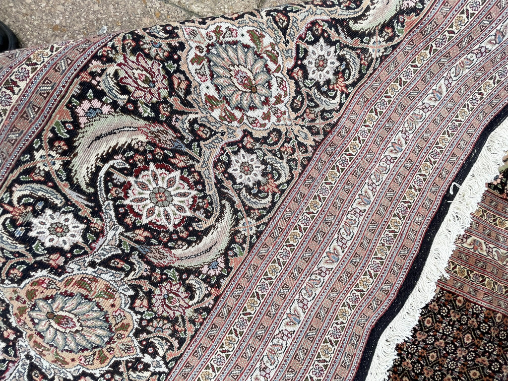 Typical of the Mahi carpet is their use of the distinctive symmetric Turkish knot and fine Kurk wool with silk accents. The Tabriz Mahi likewise possesses a high knot per square inch count (KPSI) increasing their quality by bounds. The standard Persian Mahi rug from Tabriz is at a rate of 80 knots per square inch. Most high quality Persian Tabriz Mahi rugs are typically 50 raj or 350-375 KPSI.