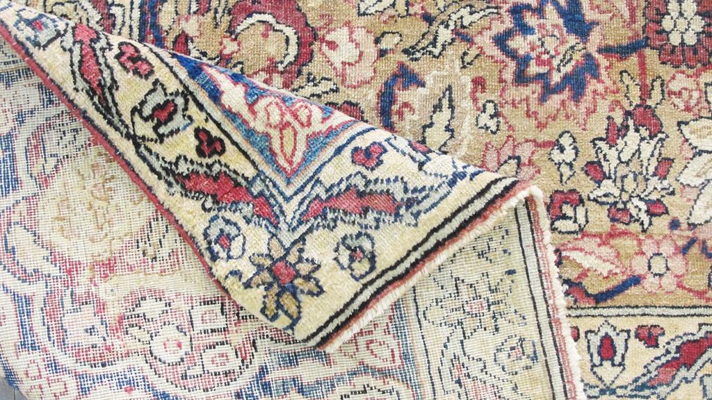 Kirman was a very important antique rug weaving centre dating from the Golden Age of Persian culture under the Safavid dynasty in the 16th century, on a par with Tabriz and Kashan in esteem. The color palette of Laver Kirman antique Persian rugs is unusually soft and delicate with a European grace. The weavers had access to the prized and extremely expensive cochineal dye which yielded the rich Renaissance blue-reds found in antique Kirman carpets, rather than the rust red found in other antique Persian rugs. The use of soft gold and yellows juxtaposed against small areas of deep, almost black indigo dyes as well as a range of soft pinks, greens, and blues give Laver Kirman antique Oriental rugs their unique and popular color palette.